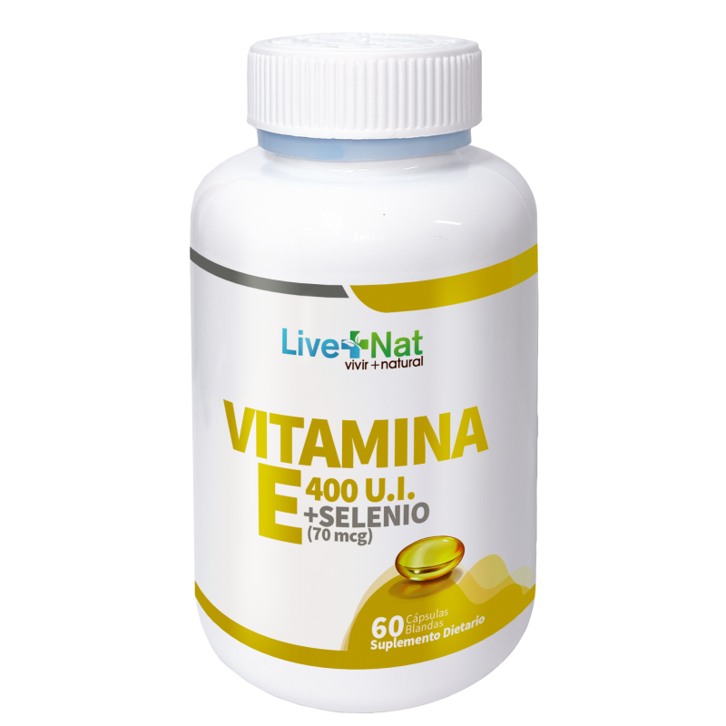Vitamina E de 400 U.I + Selenio 70 MCG, Presentación por 60 capsulas blandas.